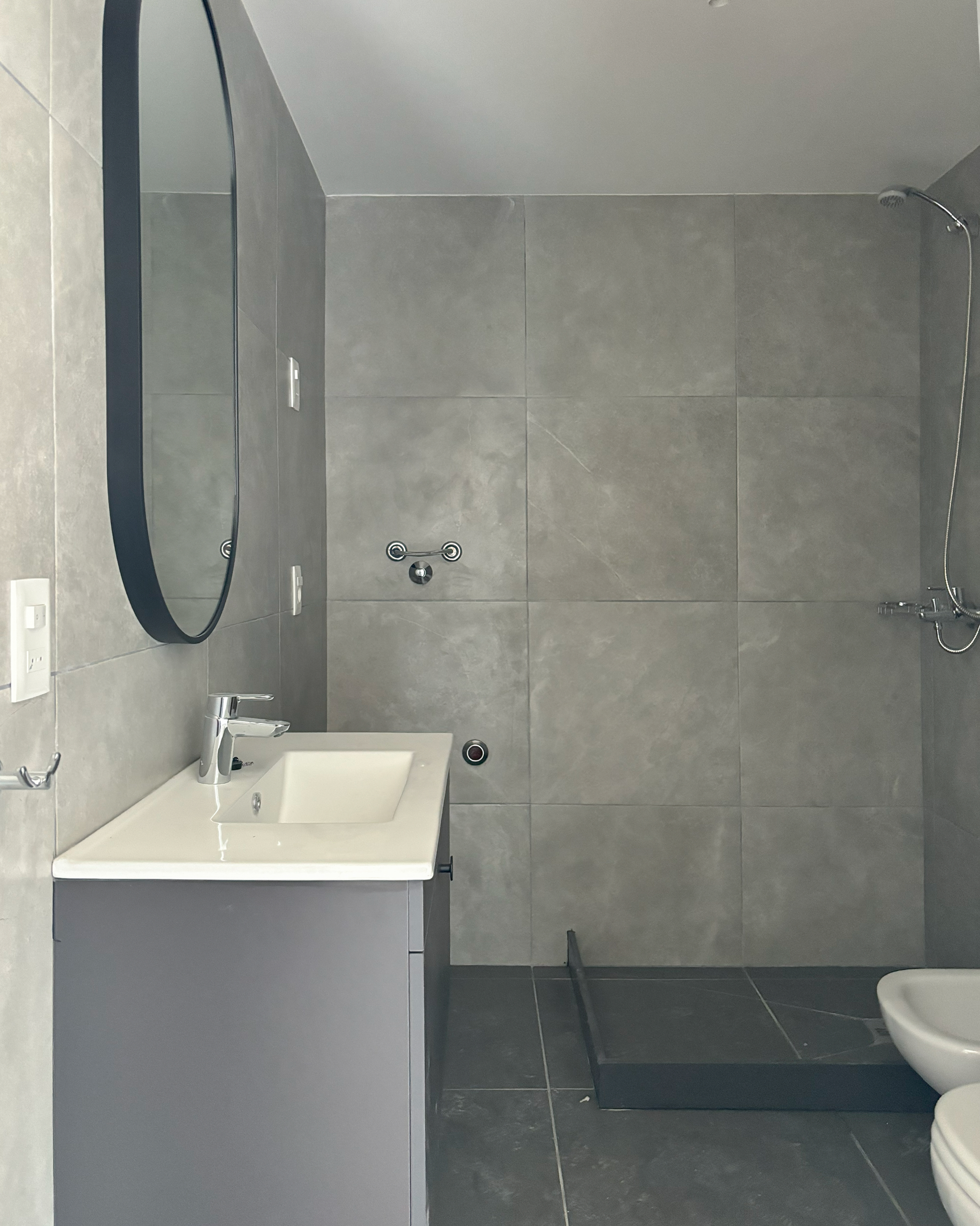 Un Baño completo con espejo y conexión para lavarropas.