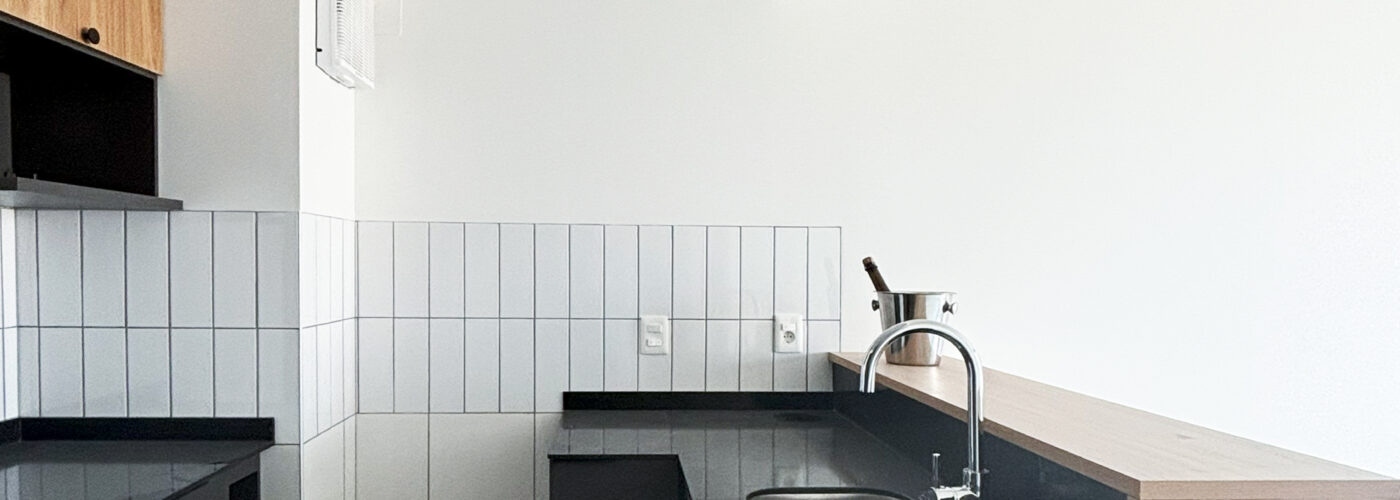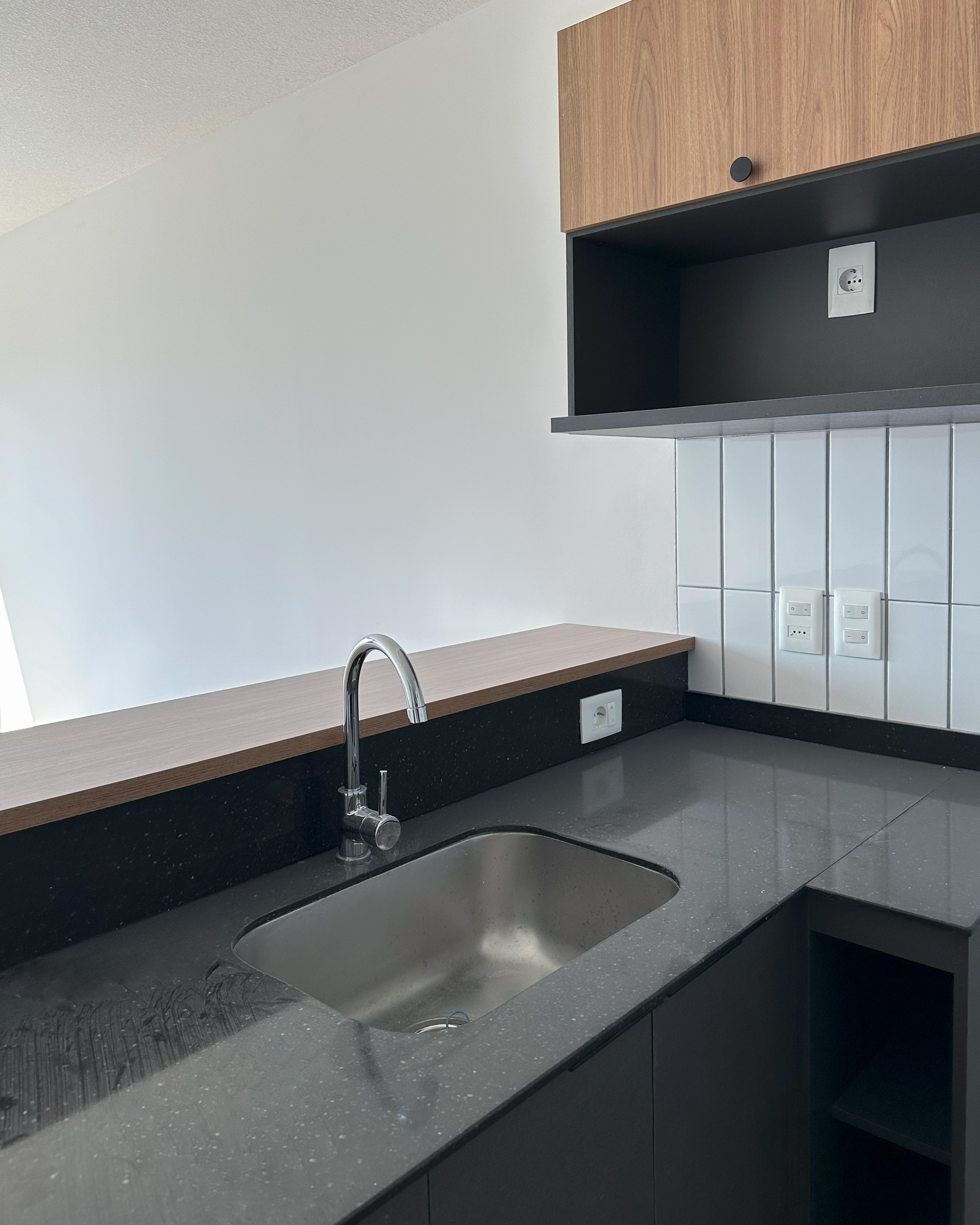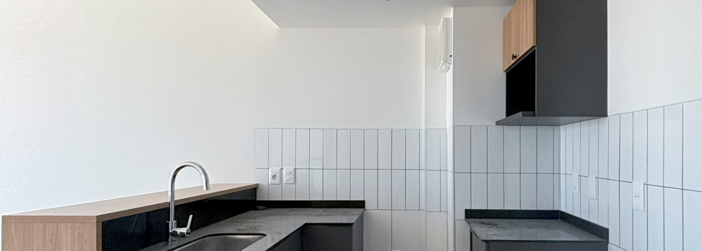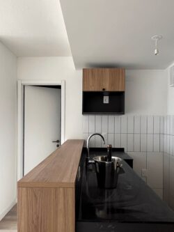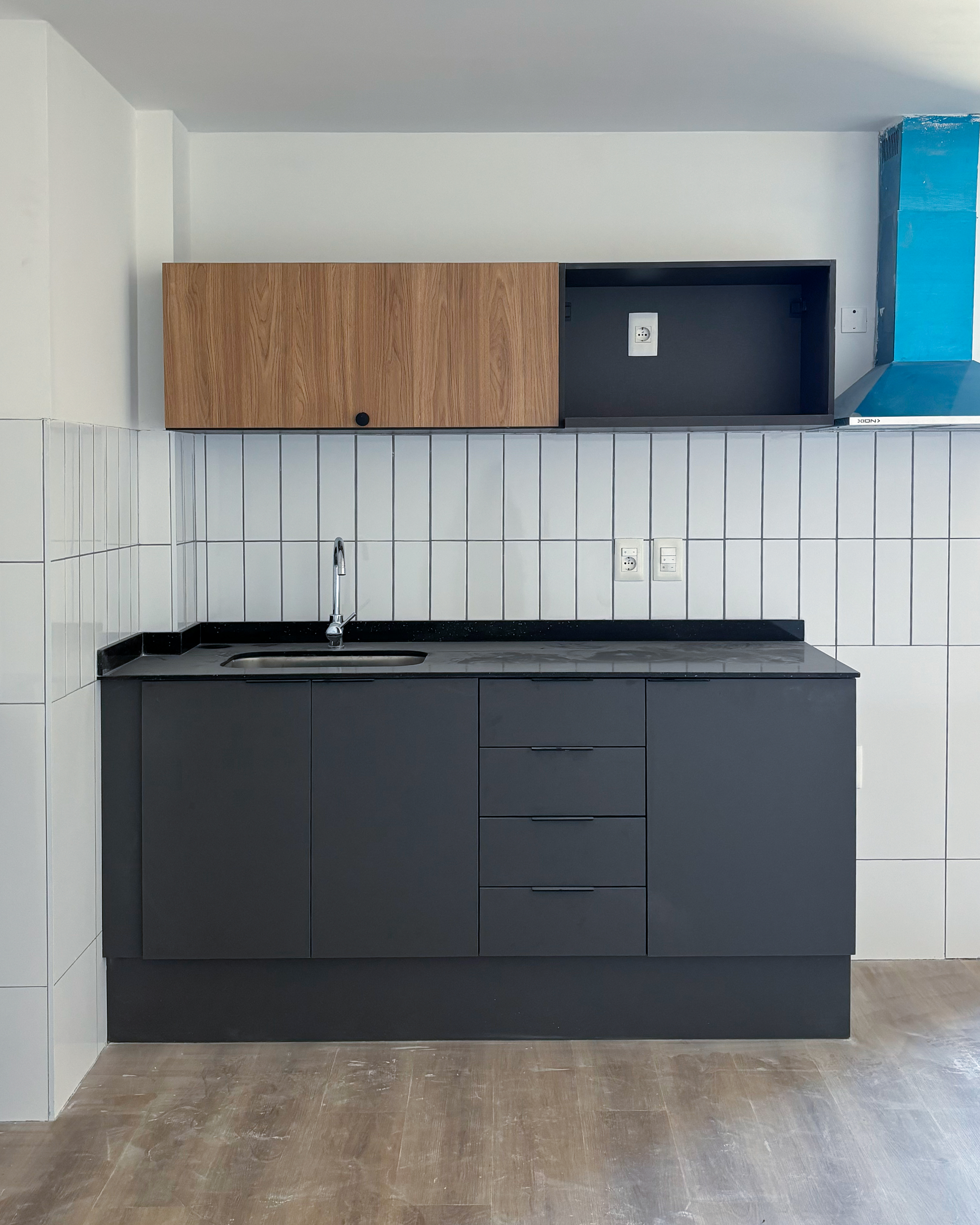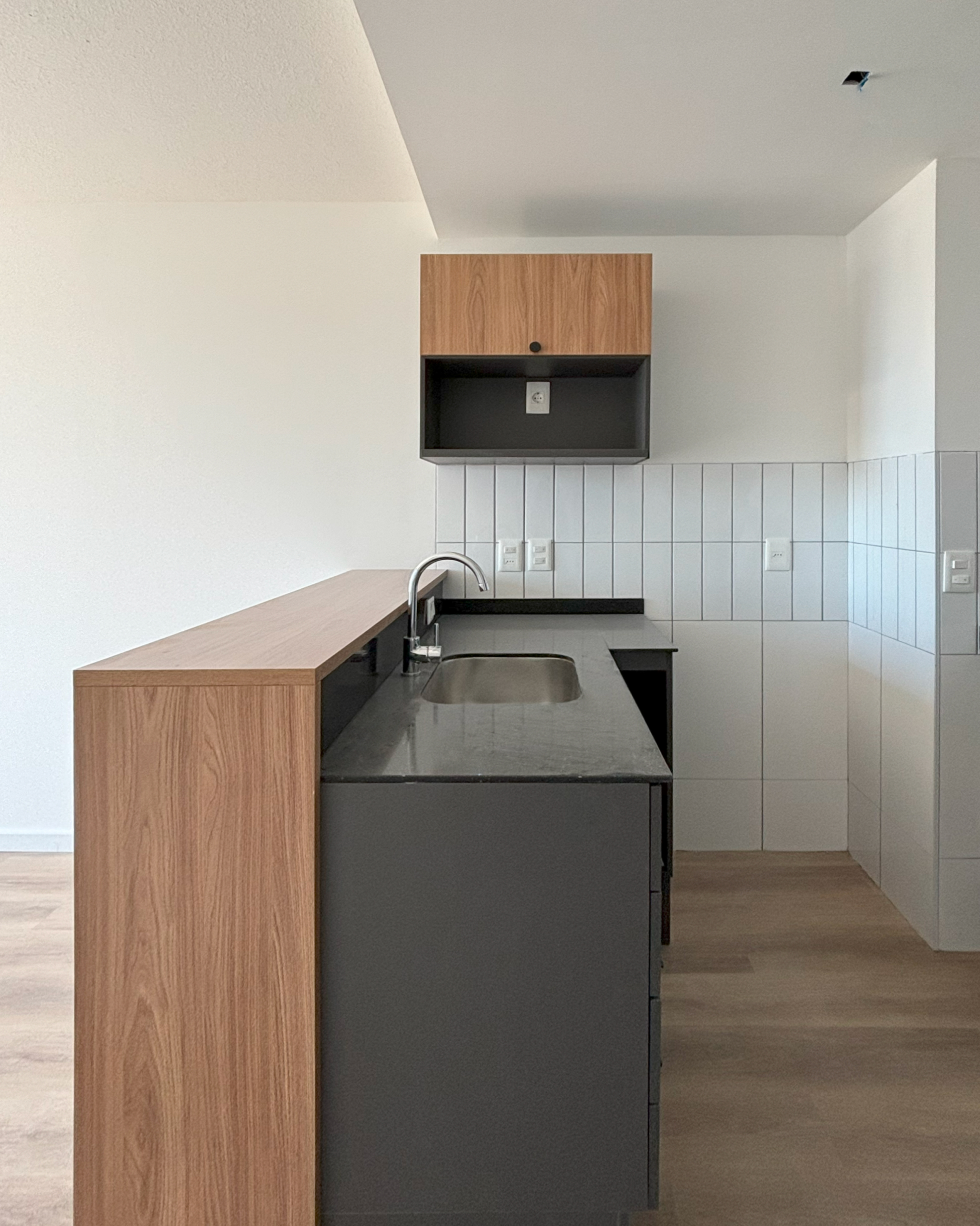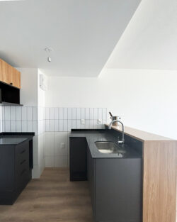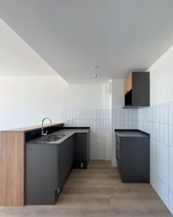 Cocina integrada con Placard aéreo y bajo mesada.