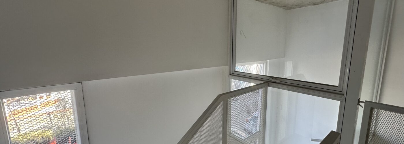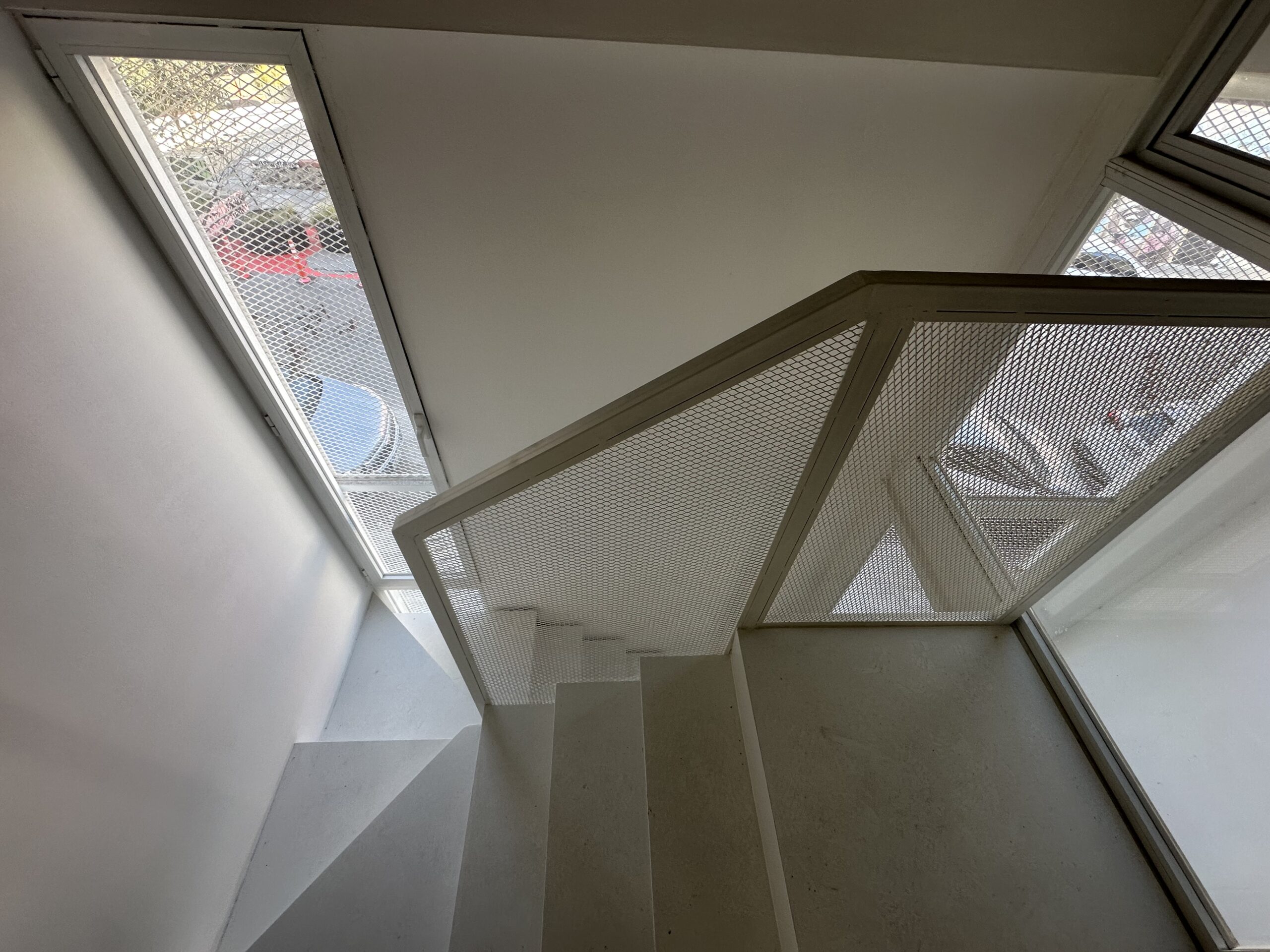 Primera Planta: Entrada independiente desde la calle hacia un estar comedor en doble altura con cocina integrada con placares.