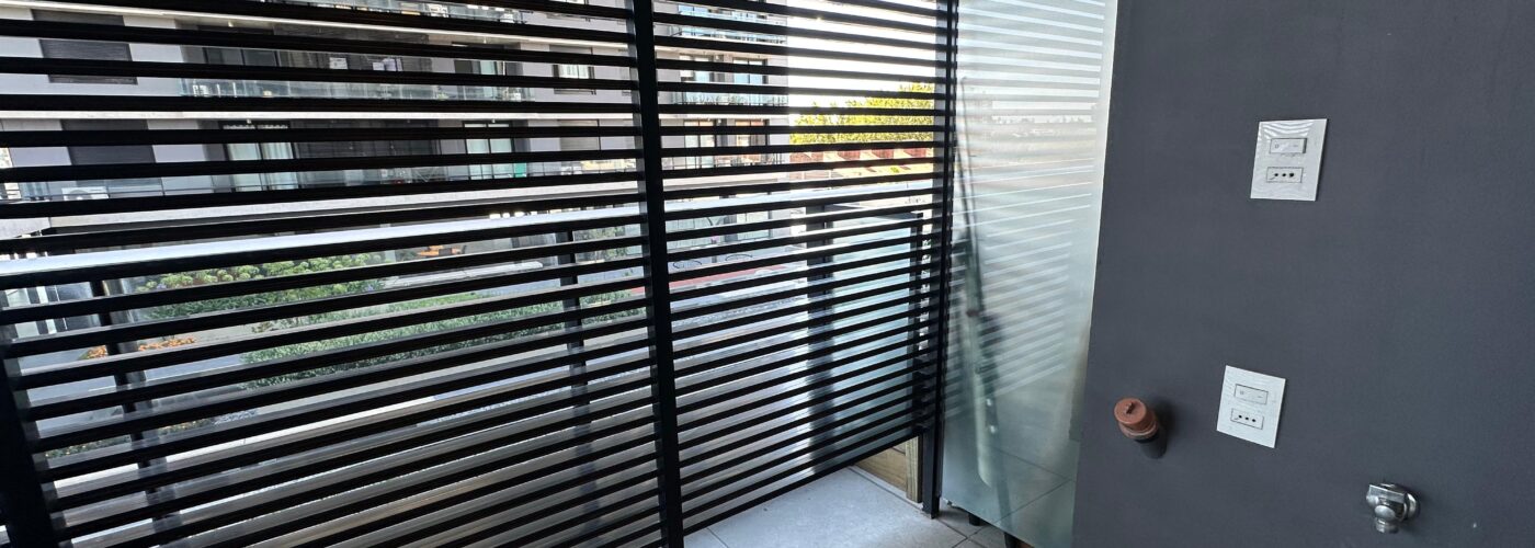Un Dormitorio con placard y cortinas roller black out.