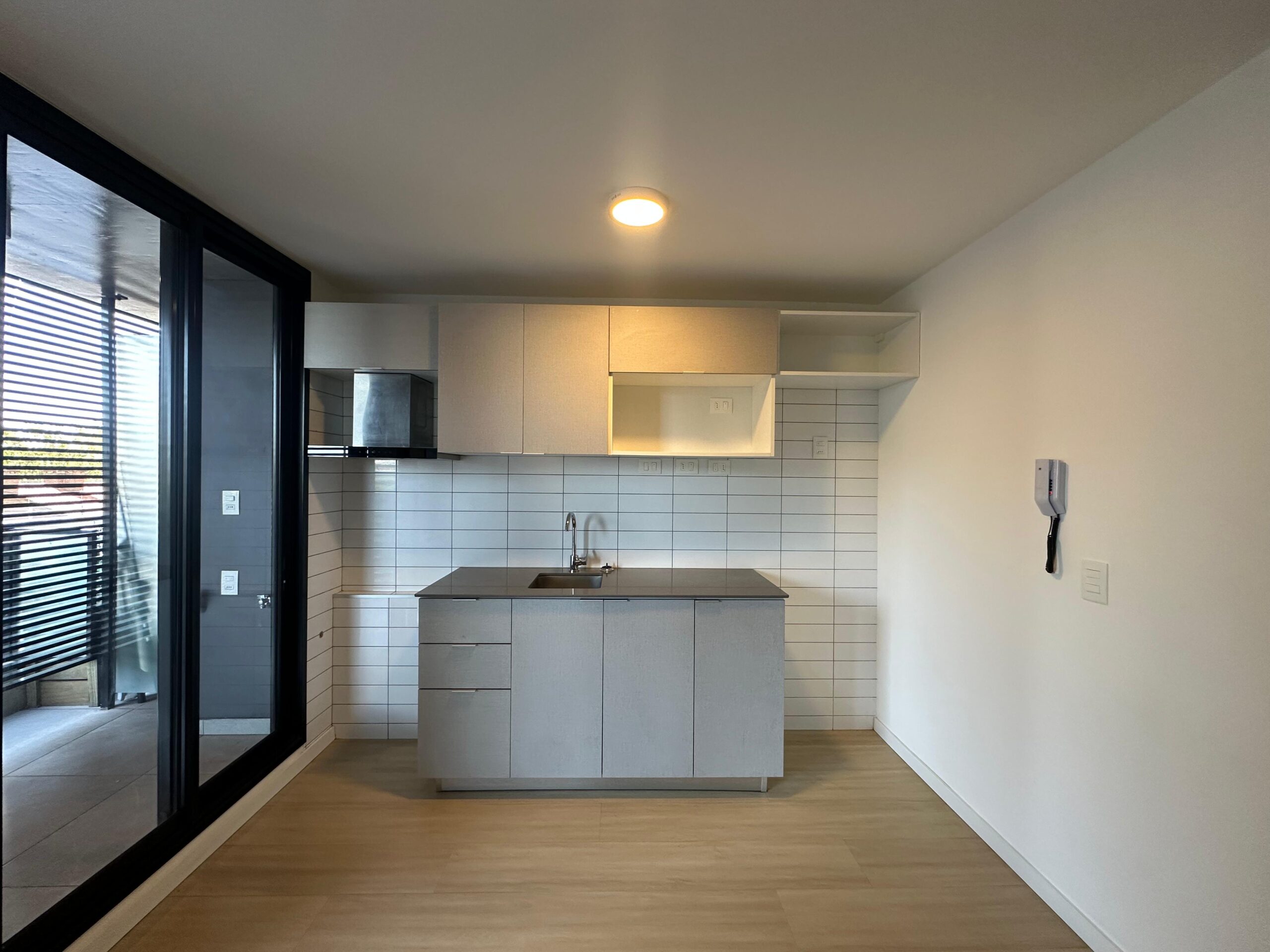 Cocina Integrada con placares aéreos, bajo mesada y Campana.