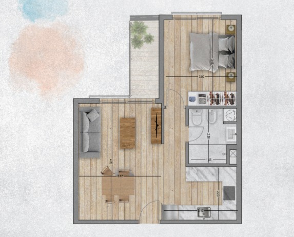 40 m2 construidos + 4 m2 de terraza