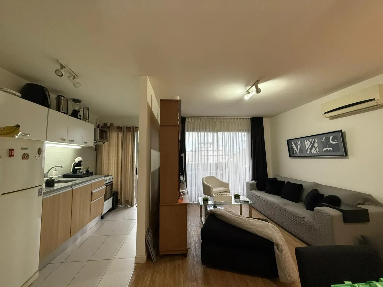 Cocina semi definida con placares aéreos y bajo mesada.