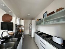 Cocina definida con comedor diario y Baño de servicio completo; profusión de placares, Horno, Anafe y Campana.