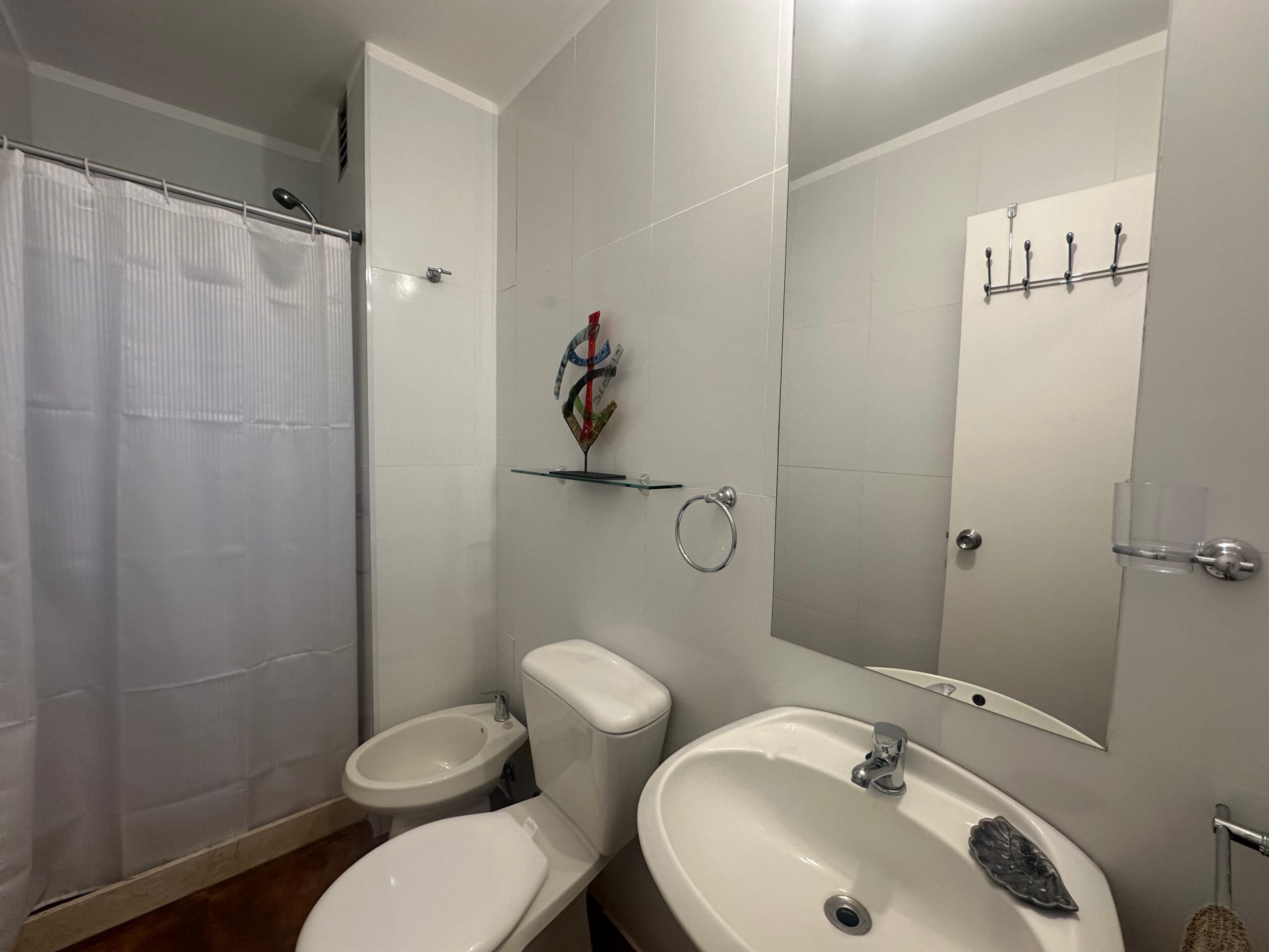 El apartamento se encuentra totalmente equipado con: calefón, frigobar, cama de 2 plazas, placard, microondas, jarra eléctrica, vajilla, TV, radiadores, mesa tipo desayunador o escritorio, butacas, cortinas de enrollar y persiana de PVC.