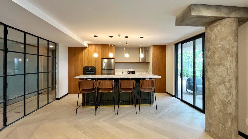El edificio cuenta con una amplia variedad de amenities: Lavadero, Co-work, Gimnasio, Playroom, Taller de bicicletas, Pick up lockers, Lobby Café.