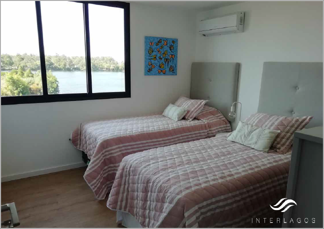 El edificio cuenta con Barbacoa con vista panorámica, Muelle privado, Solarium, Juegos infantiles, y Seguridad 24 hs.