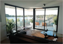 Living comedor con amplios ventanales de aluminio anodizado negro