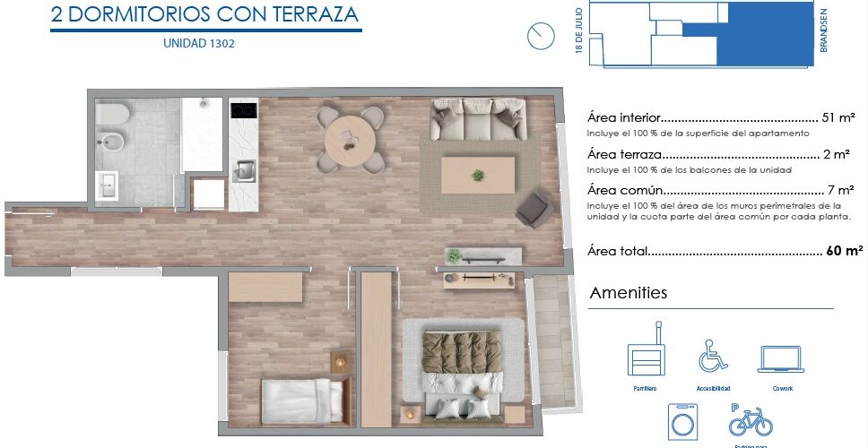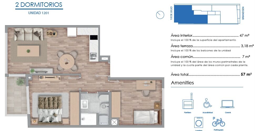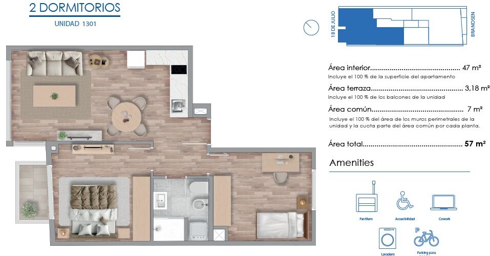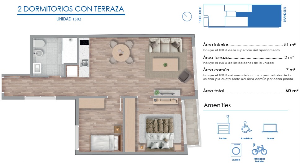 1 Dormitorio Dúplex con Terraza desde: USD 163.000