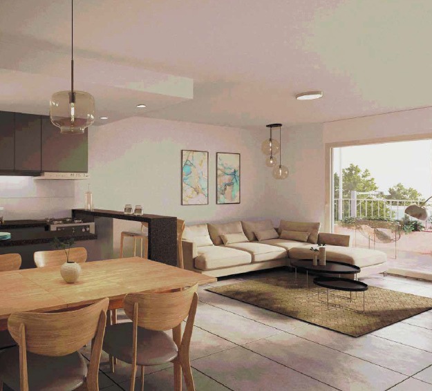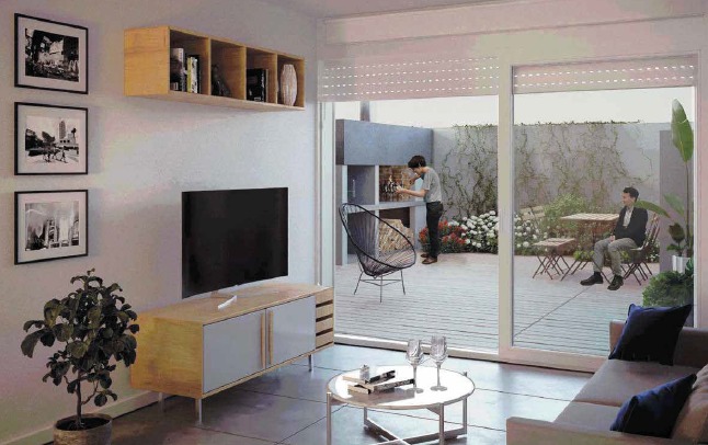 Living comedor al Frente con salida a amplia Terraza de 14 m2.