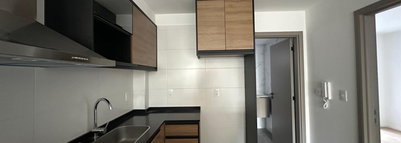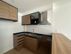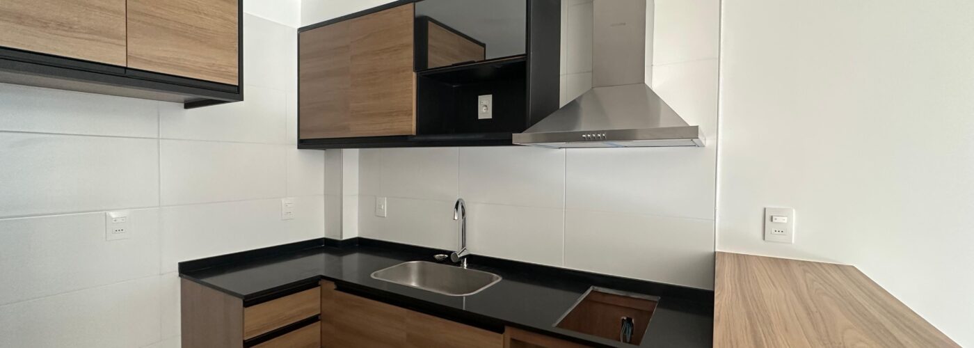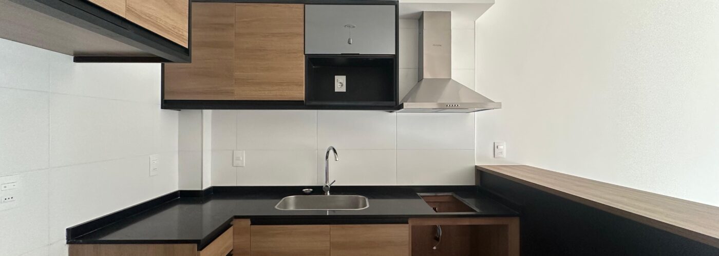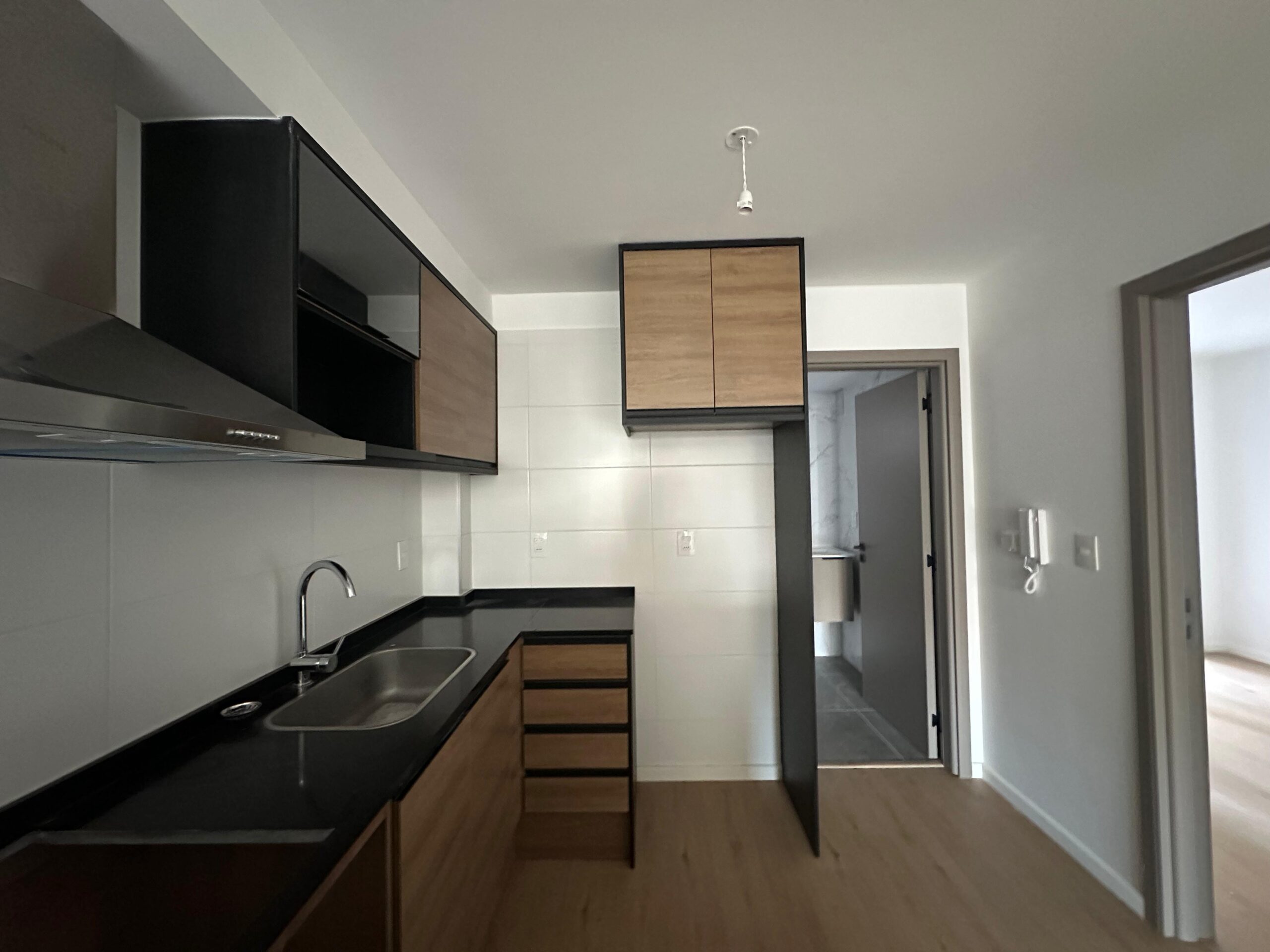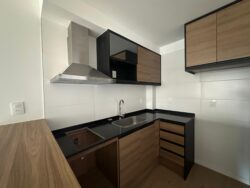 Cocina integrada con placares y campana extractora.