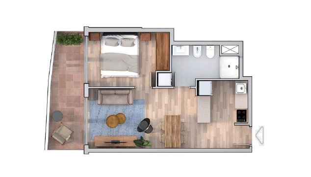 36 m2 Construidos + 6 m2 de Terraza.