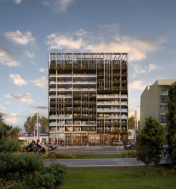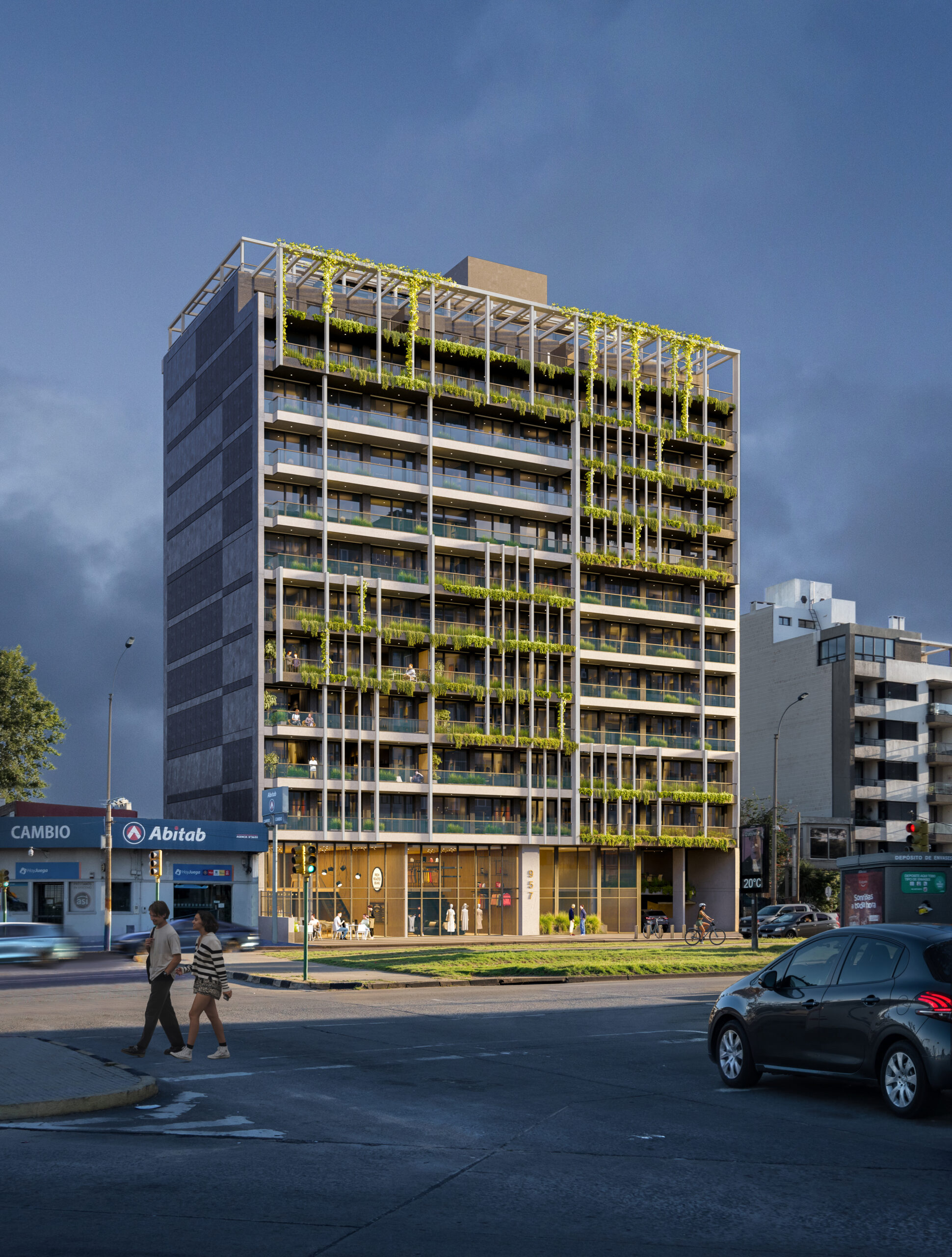 El edificio cuenta con 108 unidades de apartamentos (Monoambientes, de 1 y de 2 Dormitorios), 58 Cocheras y 2 Locales comerciales.