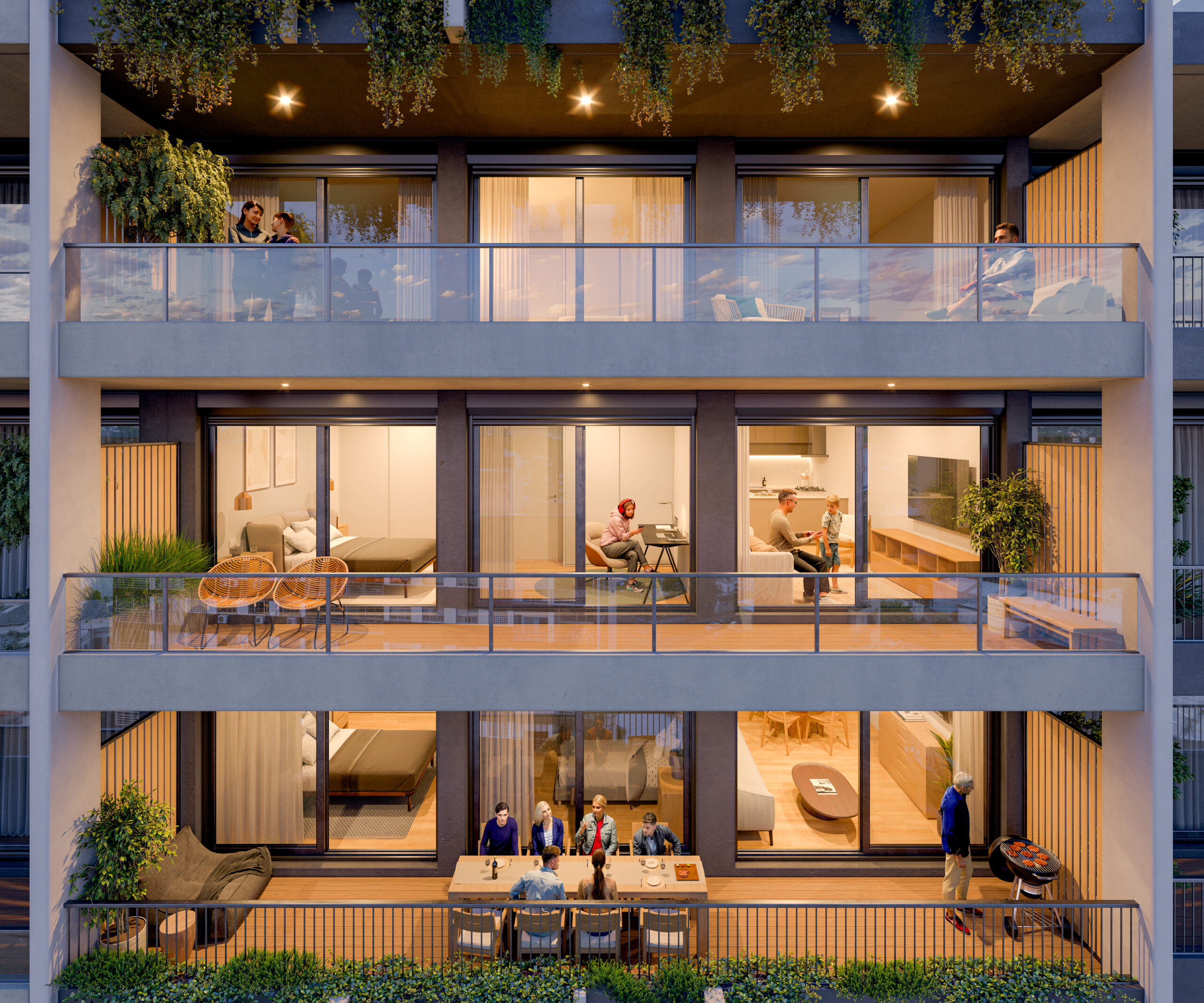 Amplia variedad de amenities: Cowork, Gimnasio (abierto y cerrado), Sala de juegos, Barbacoa cerrada con Parrillero, Barbacoas abiertas, Fogón, Circuito aeróbico abierto.