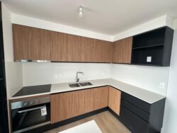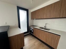 – Living comedor y cocina integrada con horno, anafe, campana y placares sobre y bajo mesada.