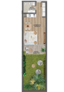 U-007 y U-008: 31 m2 Construidos + 31 m2 de Patio – con Cocina Integrada (USD 140.000).