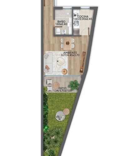 U-009: 33 m2 Construidos + 21 m2 de Patio – con Cocina Definida (USD 135.000).