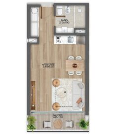 U-110: 33 m2 Construidos + 5 m2 de Terraza – con Cocina Definida (USD 125.000).