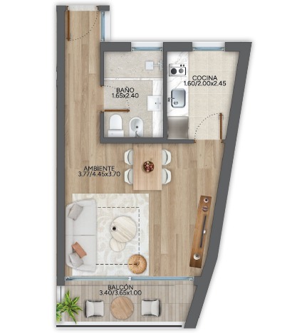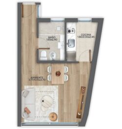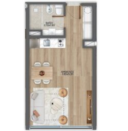 U- 210 al 410: 33 m2 Construidos – con Cocina Definida (Desde USD 115.000).
