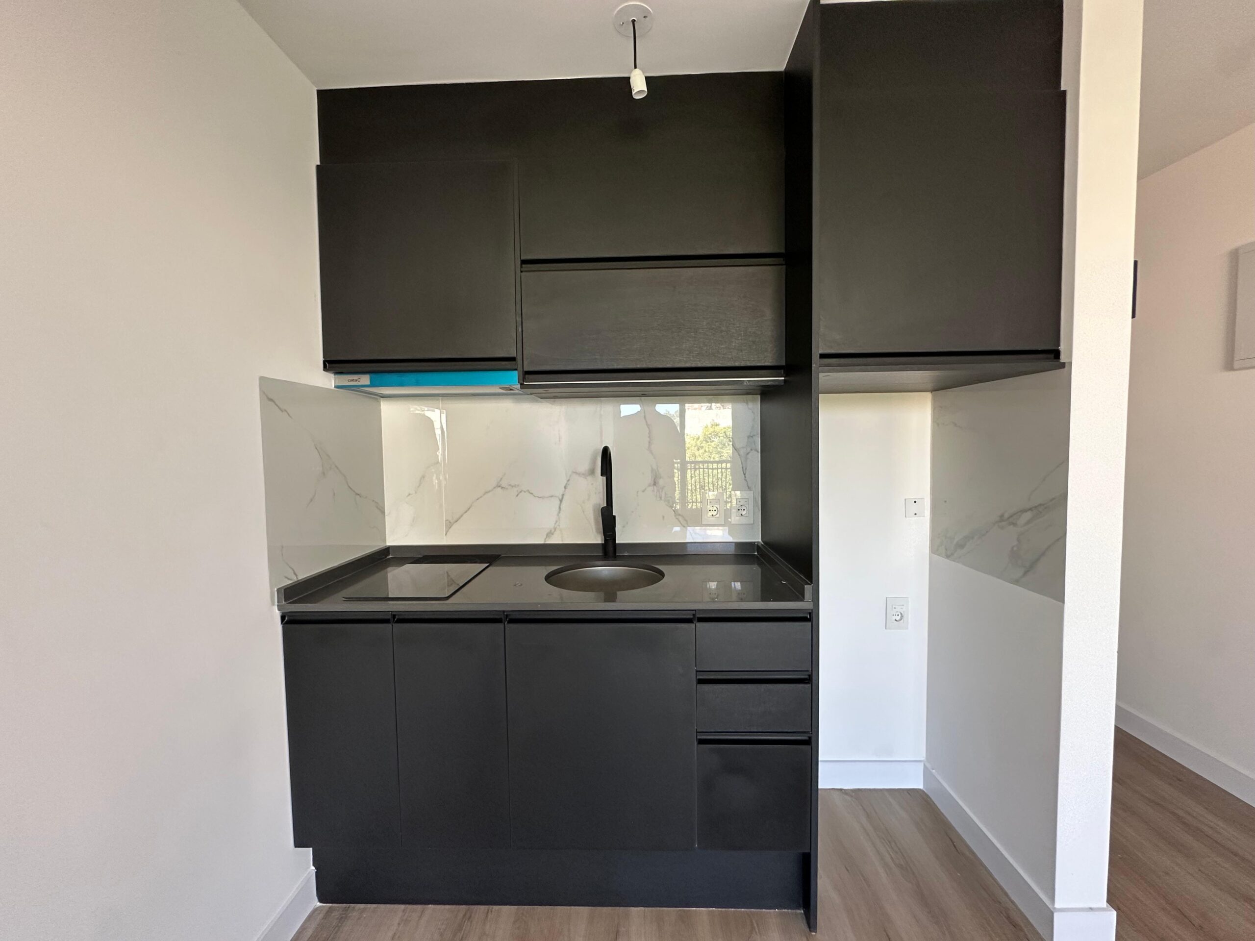 Cocina integrada con placares aéreos y bajo mesada.