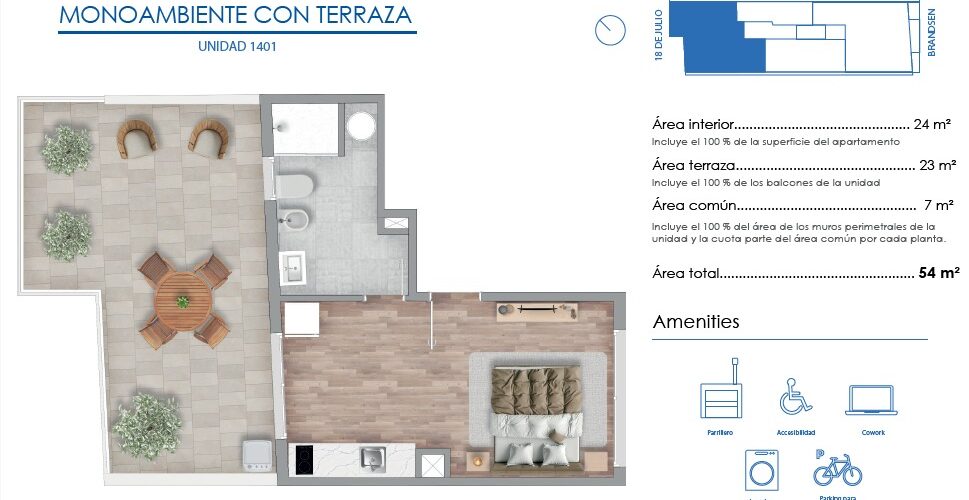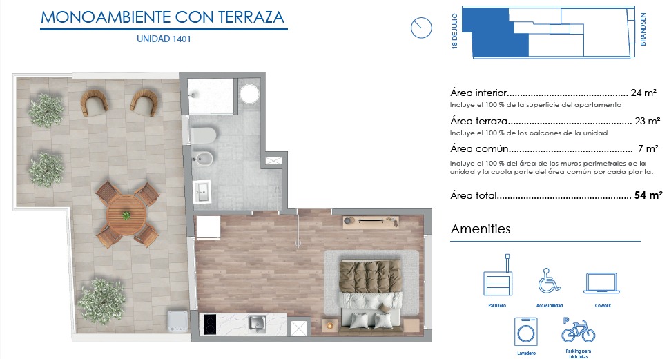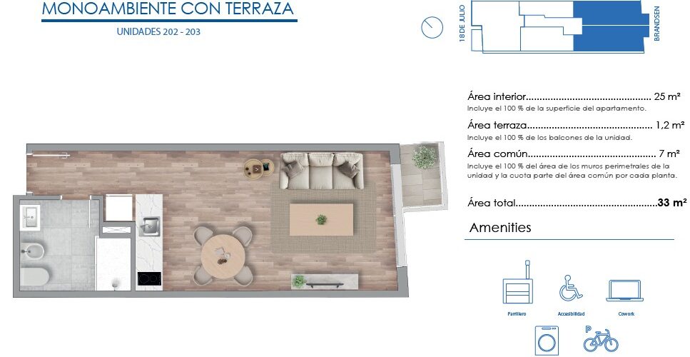 1 Dormitorio Dúplex con Terraza desde: USD 163.000